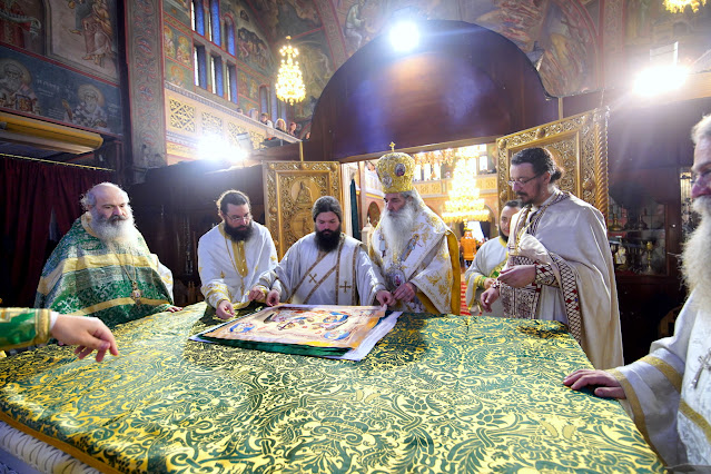 Σημειώνοντας πως ο Άγιος Νείλος ήταν «ένας άνθρωπος σαν και εμάς, άνθρωπος με οδύνες, με δυσκολίες, με αρρώστιες, με όλα τα επιγενόμενα του κόσμου της φθοράς», υπογράμμισε πως «ξεπέρασε τον παρόντα αιώνα των εμποδίων και των αντινομιών, νίκησε τελικά τον θάνατο και έγινε ο Όσιος και Θεοφόρος Νείλος ο Μυροβλύτης», καταφέρνοντας να γίνει «οικείος του Θεού», «ίνδαλμα και πρόσωπο που μας συνέχει και μας συγκροτεί». «Αυτός ο άνδρας επί τόσους τώρα αιώνες συγκροτεί τη σκέψη μας, εμπνέει την πορεία μας και τα χαριτόβρυτα λείψανά του που έχουμε εν μέσω ημών χρυσοποίκιλτα εμπνέουν, ευωδιάζουν και αγιάζουν τις καρδιές μας και τις υπάρξεις μας», πρόσθεσε.